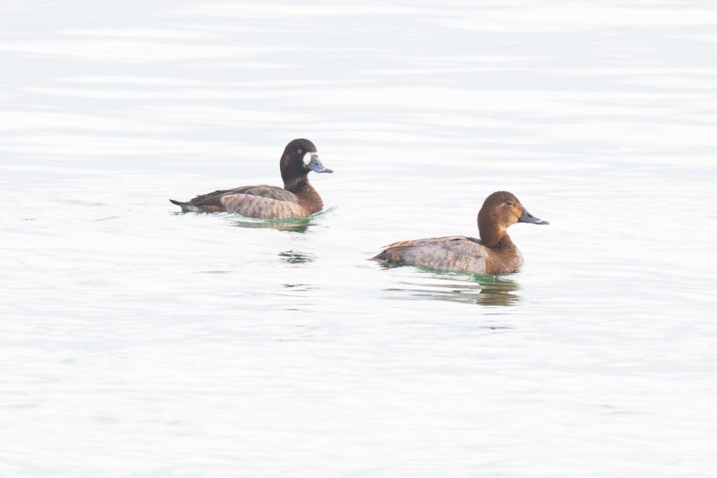 Anschliessend ging die Reise weiter nach Romanshorn. Dort hofften wir, im schon länger anwesenden riesigen Tauchententrupp etwas Besonderes zu finden. Und tatsächlich: Nach nur kurzer Zeit konnte eine weibliche Bergente unter rund 2000 Tauchenten identifiziert werden. Insgesamt kamen wir dort auf drei Bergenten und zwei Moorenten. Weit in der Ferne entdeckten wir ausserdem noch elf Singschwäne.