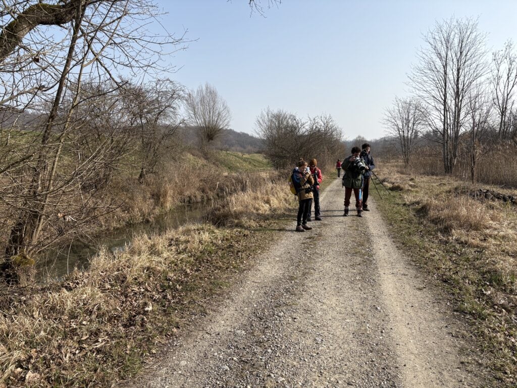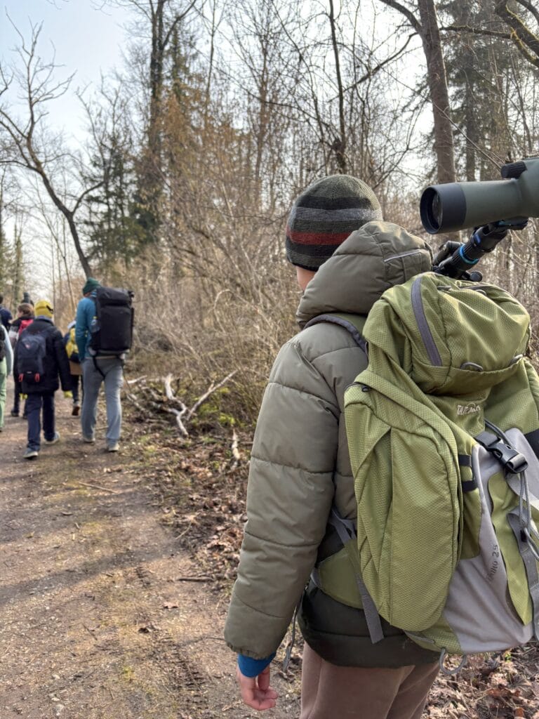 Heute trafen wir uns bereits um 6:50 am Hauptbahnhof. 21 Teilnehmer und nur vier Leiter! Weiter ging es direkt nach Frauenfeld und von dort mit dem Bus auf die Allmend. Wir suchten in diesem Wald nach Spechten. Bunt-, Mittel-, Klein-, Grün- und Schwarzspecht gelangen uns ohne Mühe zu sichten, doch der Grauspecht blieb vor uns versteckt. Dafür rannten einige Wildschweine vor uns über den Weg!