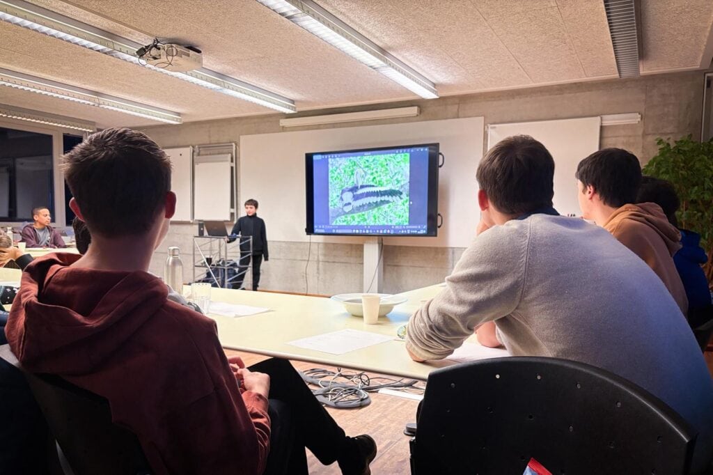 Kurz nach der Ankunft hielt Senekeh einen Vortrag über die Vogelwelt Gambias. Er zeigte uns neue und unbekannte Vögel, die viele von uns noch nicht kannten. Dann assen und plauderten wir ein bisschen, bis später das Vogelquiz anfing. Der Sieger war Elias mit 23/30 Punkten! Nachher zeigten wir uns gegenseitig unsere Fotos. Sebastian zeigte uns seine Fotos aus Norwegen, Daniel welche aus Andalusien, Liam sein aus Malaysia, David präsentierte Fotos, die er dieses Jahr bei den Exkursionen und in der Freizeit gemacht hat, Mathis zeigte uns Bilder von der Plüschkopfente von Texel, und ich zeigte Fotos aus Costa Rica. Nach dem wunderschönen Treffen mussten wir leider schon wieder aufs